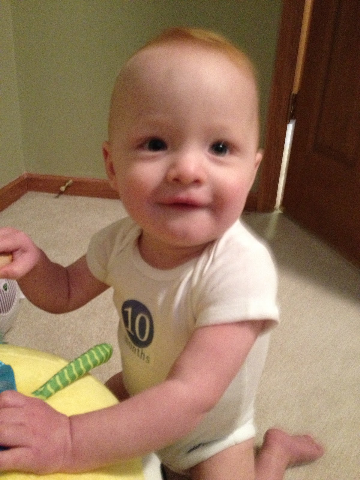 He loves to pull up on things and is beginning to walk along furniture.